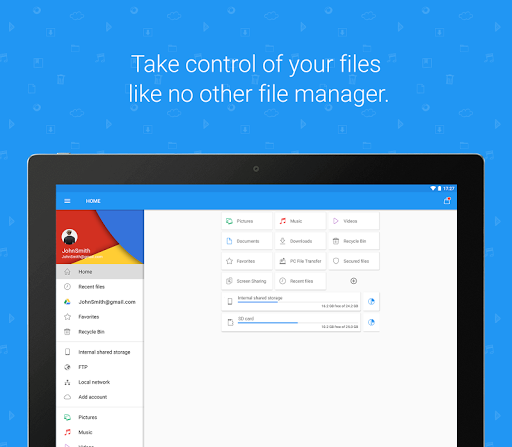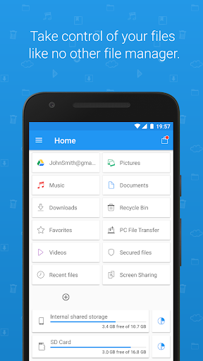 Taking full advantage of Android N, including allowing an optional login profile that saves your settings across devices, our latest version features the new Secure Mode that lets you hide and encrypt files from other device users, and also the Storage Analyzer which provides detailed storage functions, analytics and statistics.