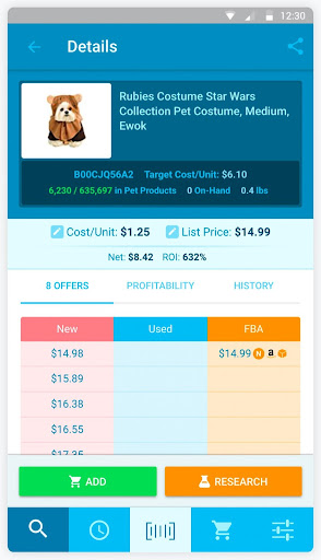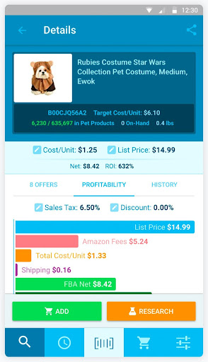 * See Restricted status BEFORE you buy. * Ideal Buy feature flags items that meet YOUR criteria for sales performance and ROI. * View your InventoryLab Sales and Purchase history for an item from within the mobile app. * Store all of your Buy Lists in history for easy retrieval. * Import your Buy Lists into Stratify with a wider set of information including Expiration Date, Condition and Tax Rate. * Fresh, intuitive interface is designed with Scouters in mind. That’s you!